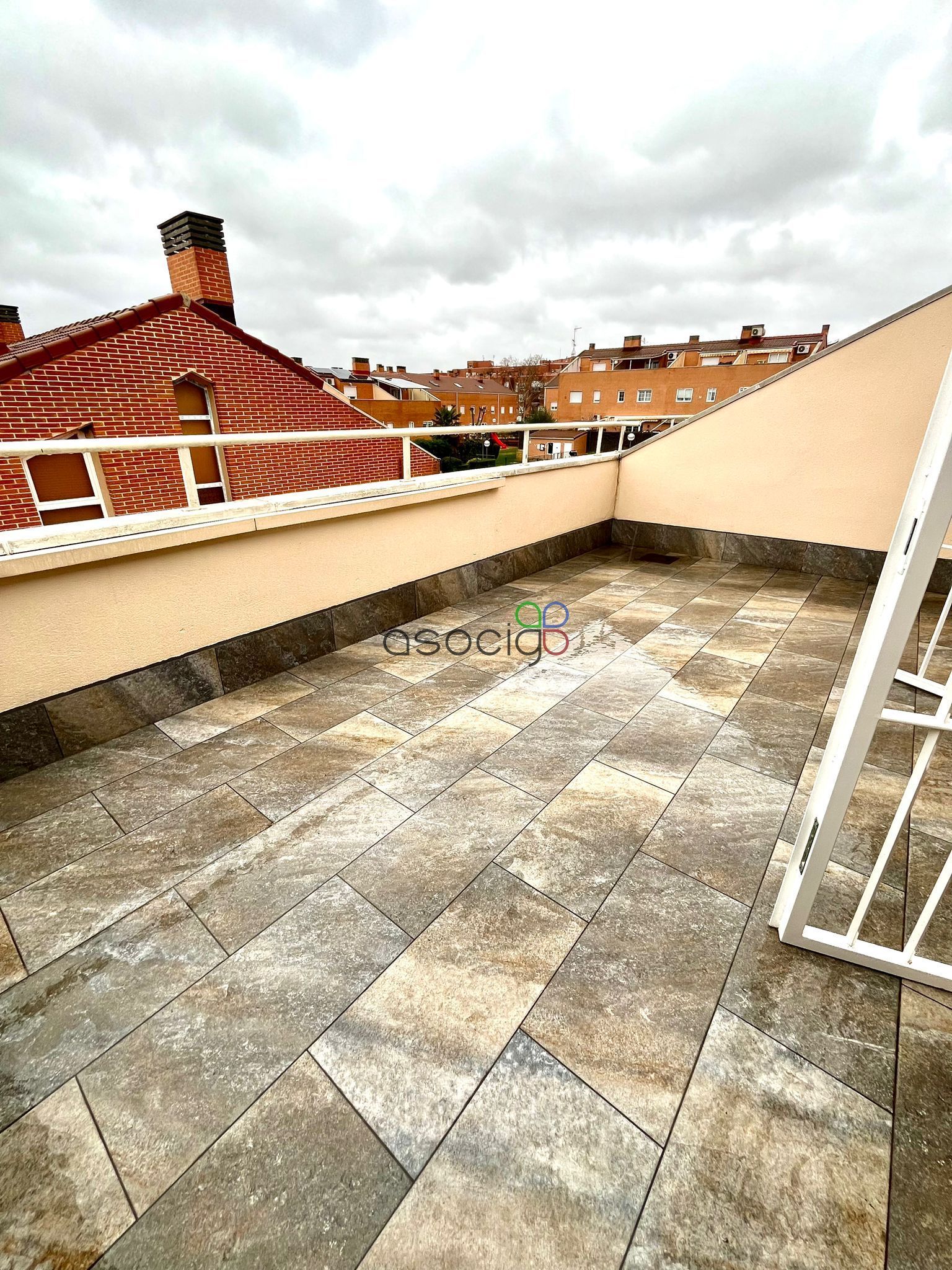En la última planta, hay un grandísimo dormitorio con un extenso armario empotrado que se extiende de lado a lado de la zona abuhardillada. Además de un baño con ducha y una terraza solarium con excelentes vistas a la urbanización.